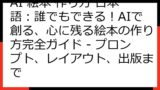 プロンプトを工夫し、編集スキルを磨くことで、より高品質な絵本制作を目指しましょう。