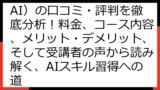 - 学習内容:生成AIに特化しているか、幅広いAIスキルをカバーしているか