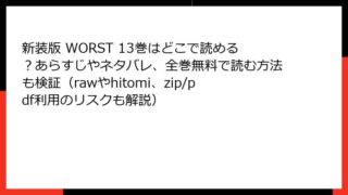 少年マンガ 新装版 WORST 13巻はどこで読める?あらすじやネタバレ、全巻無料で読む方法も検証(rawやhitomi、zip/pdf利用のリスクも解説)
