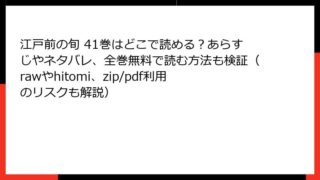 江戸前の旬 41巻はどこで読める?あらすじやネタバレ、全巻無料で読む方法も検証(rawやhitomi、zip/pdf利用のリスクも解説)