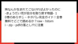 こんにちは、漫画ファンの皆さん! 人気の年の差ラブコメ『バツイチがモテるなんて聞いてません』を無料で読みたい一心で、rawやhitomi、zip/pdf形式のダウンロード、漫画バンクなどの海賊版サイトに手を出したことはありませんか? 一見、便利そうに見えますが、これらのサイトは違法アップロードの温床で、利用するだけで深刻なリスクが待ち受けています。今回は、ブログ形式でその危険性を詳しく掘り下げます。法的問題からセキュリティの脅威、倫理的な側面まで、複数のセクションに分けて解説。読み応えのある内容に仕上げましたので、ぜひ最後までお付き合いください。海賊版は絶対NG! 正規ルートをおすすめしますよ。