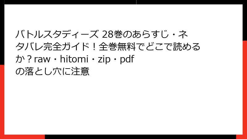こんにちは、漫画ファンの皆さん! なきぼくろ先生の『バトルスタディーズ』は、リアルな高校野球と魅力的なキャラクターで多くの読者を魅了する人気作品です。しかし、無料で読めるという誘惑から、raw、hitomi、zip、pdf、漫画バンクなどの海賊版サイトを利用しようと考える人もいるかもしれません。これらのサイトには重大なリスクが潜んでおり、知らずに利用すると大きな問題に巻き込まれる可能性があります。この記事では、海賊版サイトで『バトルスタディーズ』を読むことの危険性を、法的・技術的・倫理的な観点から詳しく解説します。ブログ形式で、読み応えのある内容にまとめましたので、ぜひ最後までご覧ください!