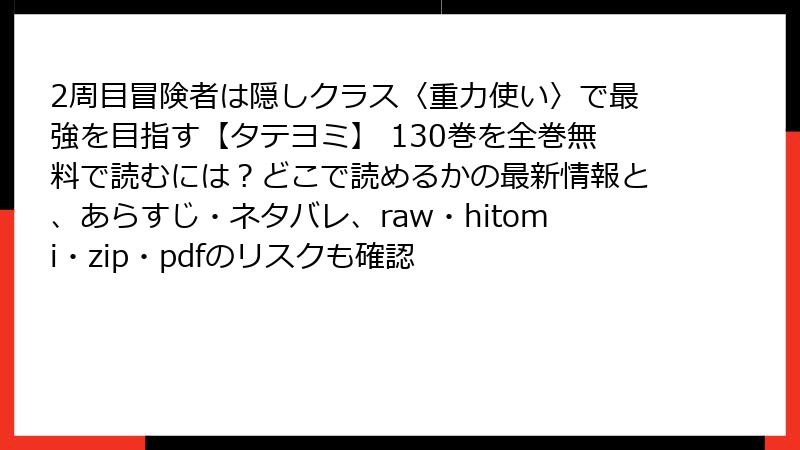 『2周目冒険者は隠しクラス〈重力使い〉で最強を目指す【タテヨミ】』130巻:レビュー・口コミ・評判を徹底解説
