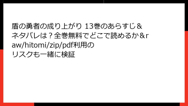 盾の勇者の成り上がり 13巻を海賊版サイトで読むリスク:知らぬ間に訪れる深刻な危険