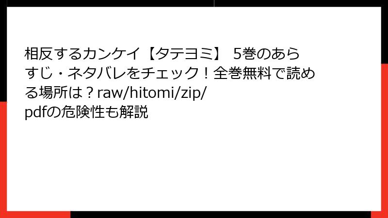 「相反するカンケイ【タテヨミ】」を愛するファンとして、作者や出版社を尊重するためにも、違法な手段は避けるべきです。法的なトラブルは、個人の将来に大きな影響を与える可能性があります。