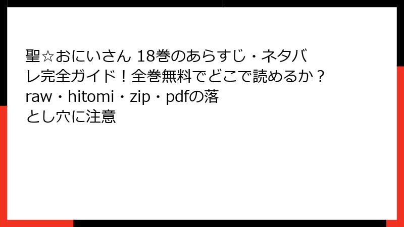人気漫画『聖☆おにいさん』を無料で読みたい一心で、海賊版サイト(raw、hitomi、zip、pdf、漫画バンクなど)に手を出したことはありませんか? 確かに一見お得に見えますが、実際には法的なトラブルからサイバー攻撃まで、さまざまなリスクが潜んでいます。この記事では、そんな海賊版サイトの利用がもたらす具体的な危険性を、ブログ形式で詳しく解説します。まだ利用を考えている方は、ぜひ読み進めてみてください。安全な楽しみ方を考えるきっかけになれば幸いです!