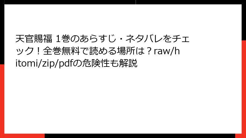 『天官賜福』は墨香銅臭による大人気の中華BLファンタジー作品で、漫画版も多くのファンを魅了しています。しかし、raw、hitomi、zip、pdf、漫画バンクなどの海賊版サイトでこの作品を読むことは、重大なリスクを伴います。本記事では、これらの海賊版サイトを利用することの危険性を、法的、倫理的、技術的な観点から詳しく解説します。安全に『天官賜福』を楽しむための知識を提供し、読み応えのあるブログ記事形式で紹介します。以下、