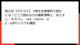 - 低品質なスキャン: 海賊版サイトのrawやpdfファイルは、画質が低く、文字が読みづらい場合があります。特に、タテヨミ漫画のスクロール体験が損なわれることが多いです。