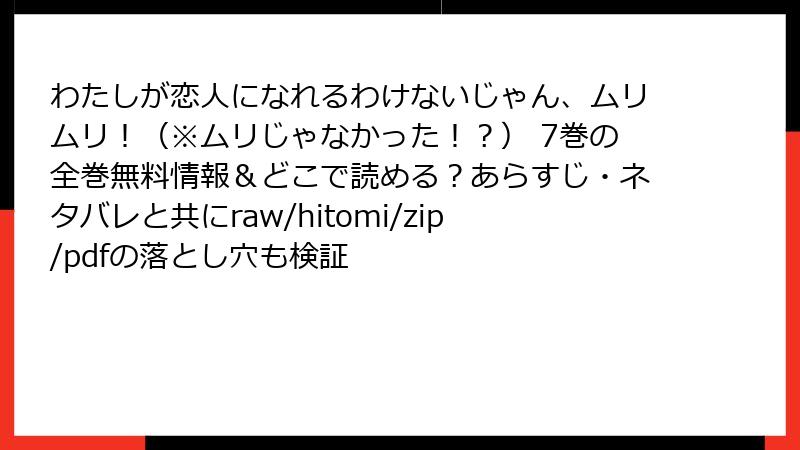 『わたしが恋人になれるわけないじゃん、ムリムリ!(※ムリじゃなかった!?)』7巻は、ストーリー、キャラクター、作画すべてが高水準で、読者の満足度が非常に高い一巻です。レビューをまとめると、以下が主な魅力です。