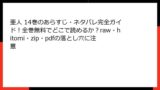| 閲覧のみ | raw/hitomiでのオンライン読み | 法的グレーゾーンだが、サイト運営者同様の責任追及の可能性 |