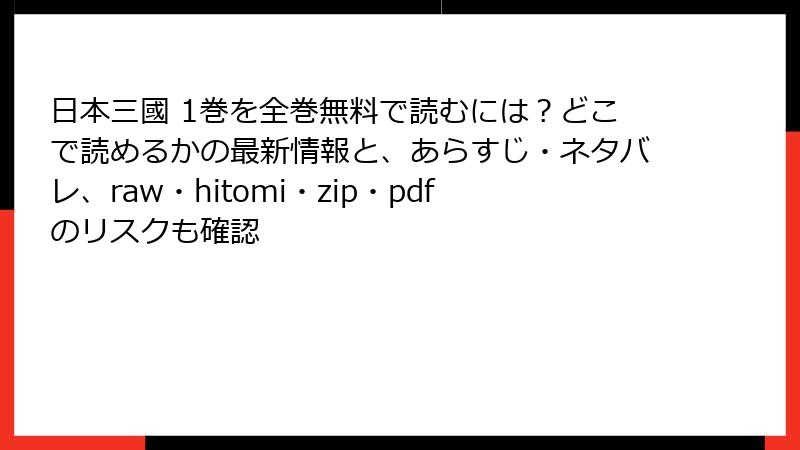 『日本三國』をraw、hitomi、zip、pdf、漫画バンクなどの海賊版サイトで読むことは、法的、技術的、倫理的なリスクを伴います。刑事罰や民事訴訟、マルウェア感染、個人情報漏洩、そして漫画業界へのダメージ――これらの危険は、無料の誘惑に勝るものではありません。好きな作品を長く楽しむためにも、正規ルートでの購入を選びましょう。