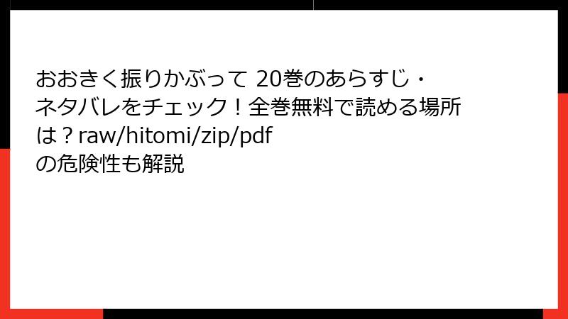 結論として、『おおきく振りかぶって』20巻は、試合の臨場感、キャラクターの成長、チームの絆が評価され、ファンから「シリーズ最高傑作の一つ」との声も。野球漫画の魅力を凝縮した一冊として、読者の心に深く刻まれています。まだ読んでいないなら、ぜひ正規版でこの感動を味わってみてください!