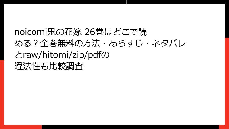 『鬼の花嫁』は、noicomiで連載中の人気ロマンティックファンタジー漫画で、26巻では柚子と玲夜の絆や妖狐一族とのドラマが大きな話題となっています。しかし、無料で読めるからといって、raw、hitomi、zip、pdf、漫画バンクなどの海賊版サイトを利用することは非常に危険です。この記事では、海賊版サイトで『鬼の花嫁』を読むことのリスクを、法的、倫理的、技術的な観点から詳しく解説します。ファンとして作品を愛するなら、正規の方法で楽しむことが大切です。以下、ブログ形式でその理由を深掘りします。