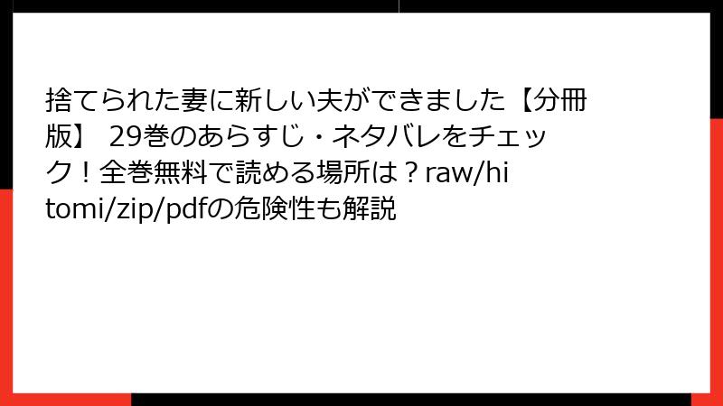 捨てられた妻に新しい夫ができました【分冊版】29巻:衝撃のネタバレと物語の核心に迫る展開