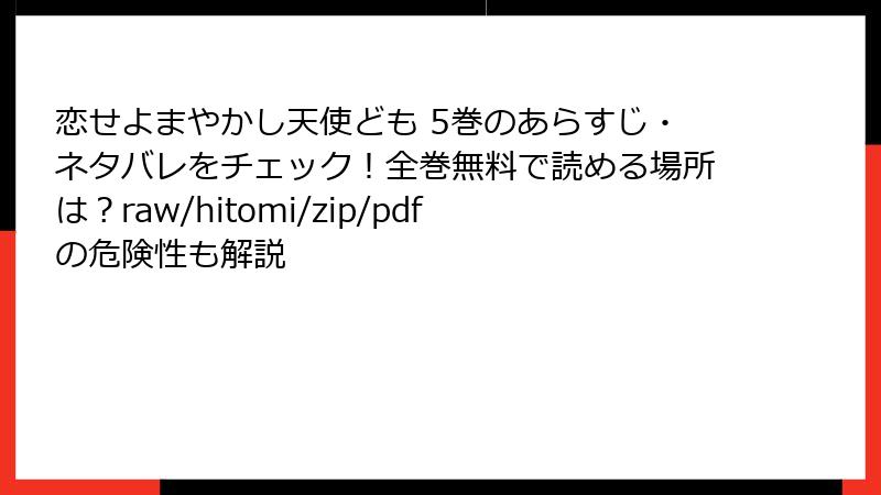 タグや箇条書き、テーブルを活用して、読み応えのある内容にまとめました。『恋せよまやかし天使ども』5巻の人気の秘密を、ネタバレを最小限に抑えつつ、たっぷりお届けします! 全体の評判:5巻はシリーズ最高の盛り上がり!