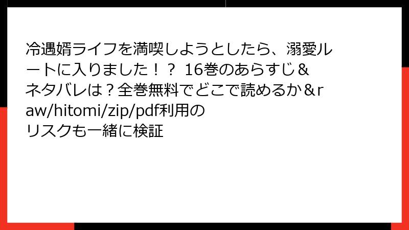 漫画を愛する一人の読者として、作品とクリエイターを守る行動が、豊かな漫画文化の未来につながります。『冷遇婿ライフ』を正規版で読み、16巻のドキドキの展開を心から楽しみましょう!
