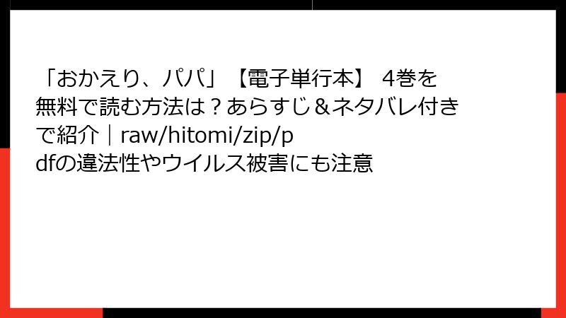 「おかえり、パパ」【電子単行本】 4巻を無料で読む方法は?あらすじ&ネタバレ付きで紹介|raw/hitomi/zip/pdfの違法性やウイルス被害にも注意