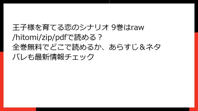 こんにちは、漫画ファンの皆さん! 『王子様を育てる恋のシナリオ』は、IS先生と雨庭有沙先生による心温まる恋愛漫画で、その魅力に多くの読者が夢中になっています。しかし、この素晴らしい作品を「raw」「hitomi」「zip」「pdf」「漫画バンク」といった海賊版サイトで読もうと考える方もいるかもしれません。今回は、海賊版サイトで漫画を読むことのリスクについて、詳しく解説します。法的、倫理的、技術的な観点から、なぜ正規の購入が推奨されるのか、ブログ記事形式で深掘りしていきます。読み応えのある内容にまとめたので、ぜひ最後までお付き合いください。