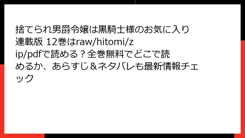 こんにちは、ファンタジーロマンス漫画に夢中のブロガー、みゆきです! 今日は、人気沸騰中の「捨てられ男爵令嬢は黒騎士様のお気に入り 連載版」の電子書籍版が、どのサービスで読めるかを詳しく解説します。この作品は、魔力ゼロの令嬢ソフィアが黒騎士ギルバートに溺愛される甘々ストーリーで、2025年9月現在、12巻まで連載中。無料試し読みやセールが充実したサービスを選べば、お得に楽しめちゃいます! 今回は、コミックシーモア、ブックライブ、まんが王国、ebookjapan、Renta!、めちゃコミック、ピッコマ、LINEマンガなどの人気プラットフォームを中心に、配信状況を徹底調査。テーブルやリストでまとめつつ、各サービスの魅力を読み応え抜群でお届けします♪
