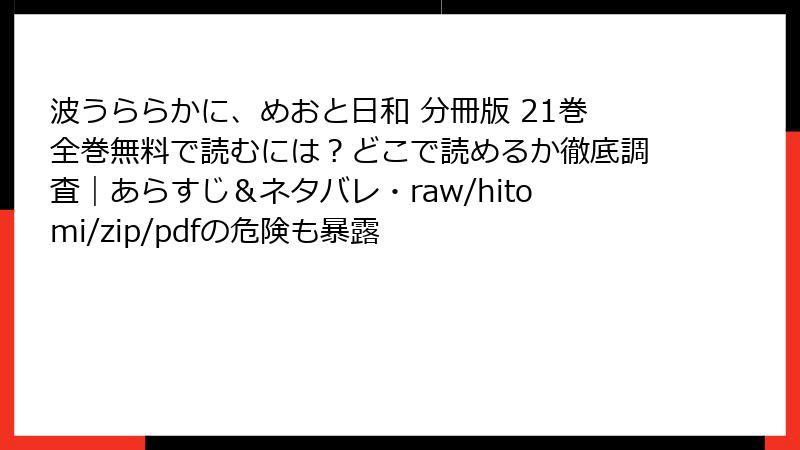 『波うららかに、めおと日和 分冊版 21巻』を海賊版サイトで読むリスクを徹底解説