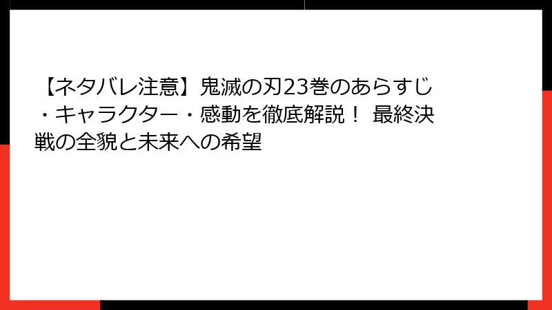 【ネタバレ注意】鬼滅の刃23巻のあらすじ・キャラクター・感動を徹底解説! 最終決戦の全貌と未来への希望