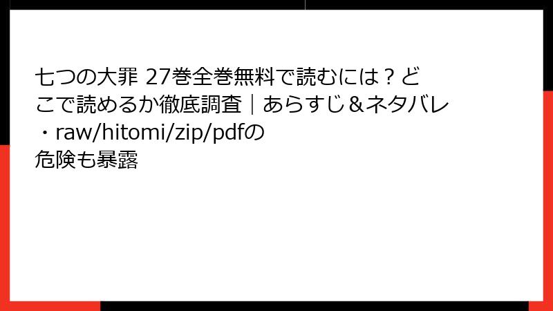 - 『七つの大罪』27巻を海賊版サイトで読むリスク:知っておくべき危険性を徹底解説