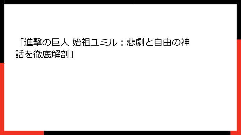 始祖ユミルの物語は、『進撃の巨人』の完結後もファンに影響を与え続けています。