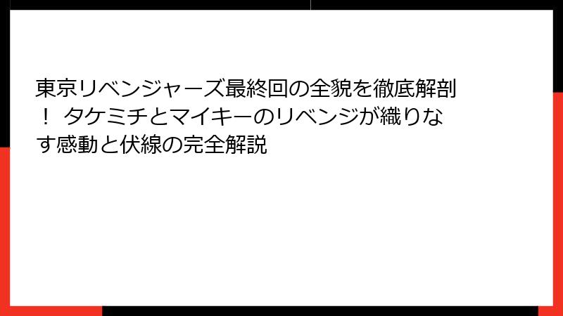 『東京リベンジャーズ』の最終回は、単なる物語の終わりではなく、読者に「自分の人生をリベンジせよ」と訴えるメッセージです。