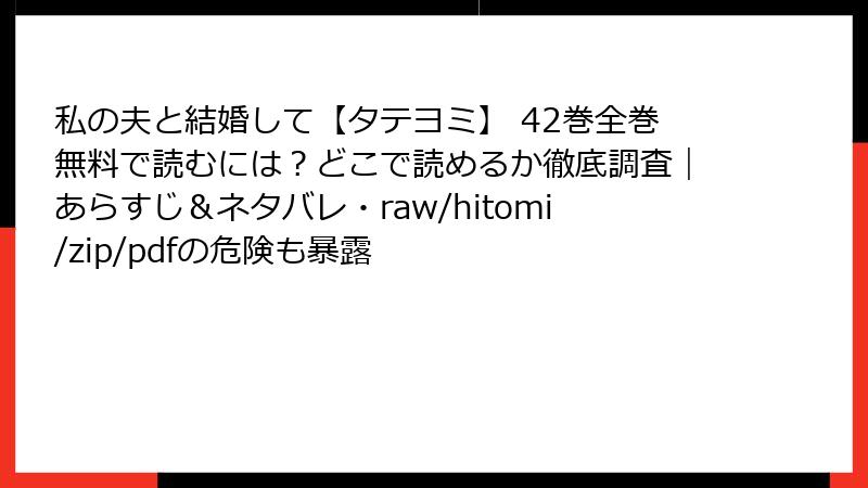 こんにちは、漫画をこよなく愛するブロガーです! 今回は、LINEマンガで大人気の復讐劇『私の夫と結婚して【タテヨミ】』42巻のレビュー・口コミ・評判を深掘りします。この巻は、主人公・美紗の緻密な復讐計画が加速し、裏切り者たちの運命が大きく動く展開で、読者の心を鷲掴みに! ネットやSNSでの反応を基に、ファンの熱い声、批評、そしてこの巻の魅力と課題をブログ形式でたっぷりお届けします。ネタバレは控えめに、ストーリーの核心には触れず、感想中心で進めますので、未読の方も安心してどうぞ。さあ、42巻の評判を一緒に紐解きましょう!