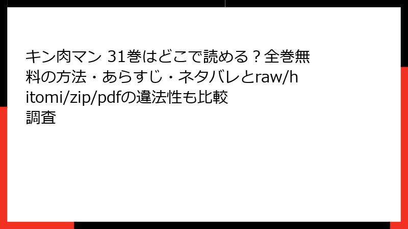 みなさん、こんにちは! 漫画好きのブログ管理人です。今日のテーマは、rawやhitomi、zip、pdf、漫画バンクなどの海賊版サイトで『キン肉マン』のような名作漫画を読むことのリスクについて。無料で最新巻が読めると魅力的ですが、その裏側には深刻な危険が潜んでいます。法的トラブルからデバイス破壊、個人情報漏洩まで、さまざまな被害が報告されています。この記事では、そんなリスクを詳しく掘り下げ、正規ルートの重要性を再認識しましょう。未読の方も、すでに利用したことがある方も、参考にしてください!