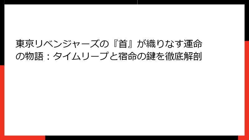 原作『東京リベンジャーズ』は、マイキーの「首」を中心に展開し、タケミチのタイムリープが物語を締めくくります。