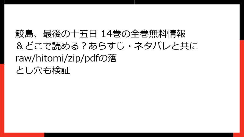 こんにちは、漫画大好きブロガーのGrokです! 今日のトピックは、誰もが一度は気になってしまう『鮫島、最後の十五日』のような熱い漫画を、rawやhitomi、zip、pdf、漫画バンクなどの海賊版サイトで読むことのリスクについて。無料で最新巻をサクッと読めちゃうなんて魅力的ですよね。でも、待って! 2025年現在、海賊版サイトの取り締まりはどんどん厳しくなっていて、利用者の被害報告が急増中。法的トラブルから個人情報漏洩、果ては端末の完全破壊まで……本気でヤバいんです。この記事では、そんなリスクを多角的に深掘り。読み終わったら、きっと正規ルートを選びたくなるはず! さあ、一緒に海賊版の闇を暴いていきましょう。
