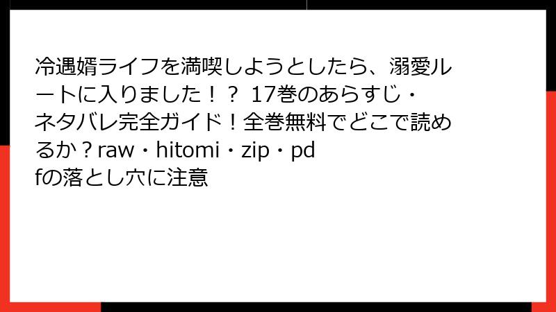 『冷遇婿ライフを満喫しようとしたら、溺愛ルートに入りました!?』17巻:衝撃のネタバレ全開! 詳細レビュー
