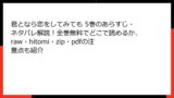 | 無料公開 | 正規の価格(数百円~数千円)を支払わず、無料で読める |