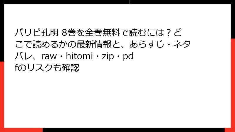『パリピ孔明』のような人気漫画を、raw、hitomi、zip、pdf、漫画バンクなどの海賊版サイトで読むことは、一見手軽で無料に見えるかもしれません。しかし、これらのサイトを利用することは、法的、倫理的、そして技術的な重大なリスクを伴います。この記事では、海賊版サイトを利用して『パリピ孔明』を読むことの危険性を、詳細にわたって解説します。無料で読める誘惑に負ける前に、以下のリスクをしっかりと理解しておきましょう。