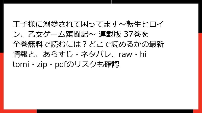 こんにちは、マンガ愛好家のブロガーです! 今日は、誰もが一度は気になってしまう「王子様に溺愛されて困ってます~転生ヒロイン、乙女ゲーム奮闘記~」のような人気コミックを、raw、hitomi、zip、pdf、漫画バンクなどの海賊版サイトで読むことのリスクについて、ガッツリ深掘りします。無料で最新巻が読めるなんて魅力的ですが、2025年現在、これらのサイトは法的・セキュリティ・経済的な地雷原。利用者の被害事例が急増中で、軽い気持ちでアクセスすると取り返しのつかない事態に…。この記事では、複数の側面からリスクを読み応え満点で解説し、正規ルートのすすめもお届けします。未読のあなた、絶対に読んで損なし!