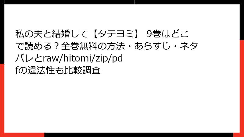 こんにちは、漫画愛好家の皆さん! 人気ウェブトゥーン『私の夫と結婚して【タテヨミ】』のような魅力的な作品を、無料で手に入れたくなる気持ちはわかります。でも、raw、hitomi、zip、pdf、漫画バンクなどの海賊版サイトを利用するのは、絶対に避けるべきです。2025年現在、これらのサイトは法的取り締まりが強化され、利用者の被害事例が急増中。単なる「無料の誘惑」ではなく、ウイルス感染、個人情報漏洩、巨額の罰金リスクが潜んでいます。このブログ記事では、そんな海賊版サイトの危険性を、複数の角度から詳しく解説。読み応え満点の内容で、皆さんが安全な読書を選べるようお手伝いします。未読の方は、ネタバレなしでリスクだけチェックしてね!