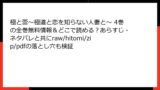 - クリエイターの損失:海賊版による収益減少は、作者のモチベーション低下や新作制作の資金不足に直結。シリーズが打ち切られるリスクも高まります。