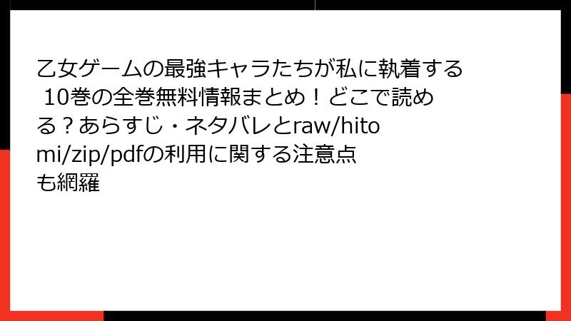 こんにちは、漫画を愛するブロガーです! 『乙女ゲームの最強キャラたちが私に執着する』は、転生ものとして大人気の作品ですが、raw、hitomi、zip、pdf、漫画バンクなどの海賊版サイトで読もうと考える方もいるかもしれません。しかし、これらのサイトを利用することは重大なリスクを伴います。この記事では、海賊版サイトで漫画を読むことの危険性を、法的・倫理的・技術的な観点から詳しく解説します。『乙女ゲームの最強キャラたちが私に執着する』を正規ルートで楽しむべき理由を、読み応えのある形で紐解いていきましょう。
