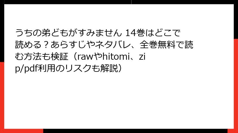 こんにちは、マンガ愛好家の皆さん! 今回は、オザキアキラ先生の人気少女漫画『うちの弟どもがすみません』を、raw、hitomi、zip、pdf、漫画バンクなどの海賊版サイトで読むことのリスクについて、詳しくお話しします。この作品は、糸と4人のイケメン義弟たちのドタバタな日常と恋模様が魅力で、累計270万部を突破した大人気シリーズ。しかし、無料で読める誘惑に駆られて海賊版サイトに手を出してしまうと、さまざまな危険が潜んでいます。この記事では、法的、技術的、倫理的な観点から、そのリスクを徹底解説します。読み応えのある内容で、