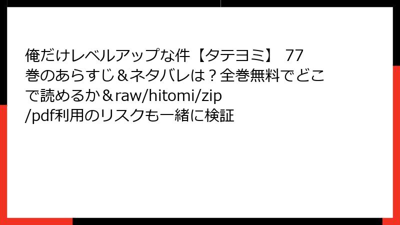 『俺だけレベルアップな件【タテヨミ】』をraw、hitomi、漫画バンクなどの海賊版サイトで読むことは、法的、倫理的、技術的なリスクを伴います。違法ダウンロードによる刑事罰や民事訴訟の可能性、クリエイターへの経済的損害、そしてマルウェアやフィッシングによるデバイスと個人情報の危険は、無料で読むメリットを大きく上回ります。作品を愛するファンとして、公式プラットフォームを利用することで、安全に楽しみながら、作者や出版社を応援しましょう。あなたはどのようにこの作品を楽しんでいますか? 公式サイトでのおすすめの読み方や、好きなエピソードをぜひシェアしてください!