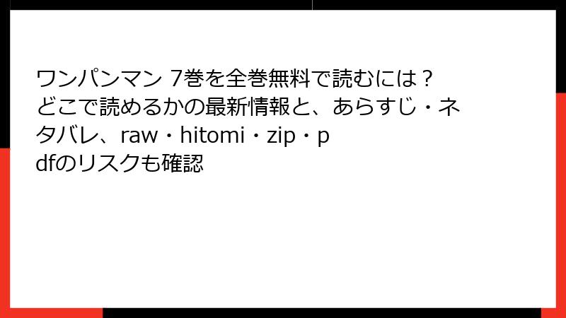 みなさん、こんにちは! 漫画好きのブログ管理人です。人気の『ワンパンマン』をはじめ、魅力的なストーリーと美しい作画に心奪われる毎日ですが、無料で読める海賊版サイト(raw、hitomi、zip、漫画バンクなど)に手を出したことはありませんか? 「お金がかからず最新話がすぐ読める!」という誘惑は強いですが、実際には深刻なリスクが潜んでいます。この記事では、そんな海賊版サイトの危険性を、法的・セキュリティ・経済的な観点から詳しく解説。読み応え満載で、なぜ正規ルートを選ぶべきかを一緒に考えていきましょう。ネタバレなしで安全に楽しむためのヒントもお届けします!