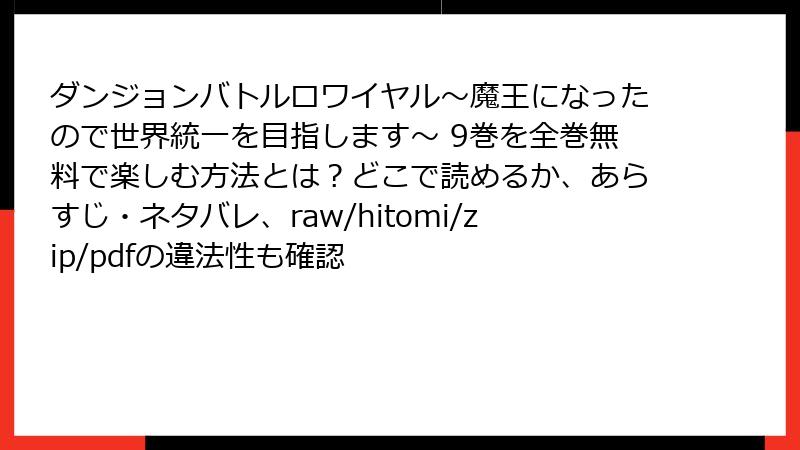 ダンジョンバトルロワイヤル〜魔王になったので世界統一を目指します〜 9巻を全巻無料で楽しむ方法とは?どこで読めるか、あらすじ・ネタバレ、raw/hitomi/zip/pdfの違法性も確認