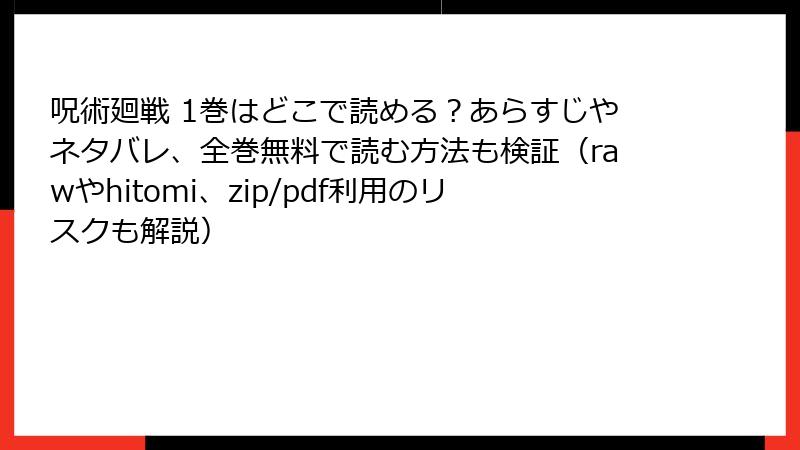 こんにちは、漫画ファン必見のセキュリティブロガーです! 人気の『呪術廻戦』をはじめ、rawやhitomi、zip、pdf形式の海賊版サイトで無料で読める誘惑に負けそうになったこと、ありませんか? でも、待って! その「タダ」の裏側には、想像以上の危険が潜んでいます。この記事では、そんな海賊版サイトのリスクを徹底的に掘り下げます。法的トラブルからウイルス感染、個人情報漏洩まで、リアルな事例を交えて解説。読み終わったら、正規ルートで楽しむ重要性がきっと実感できるはず。さあ、警鐘を鳴らしましょう!