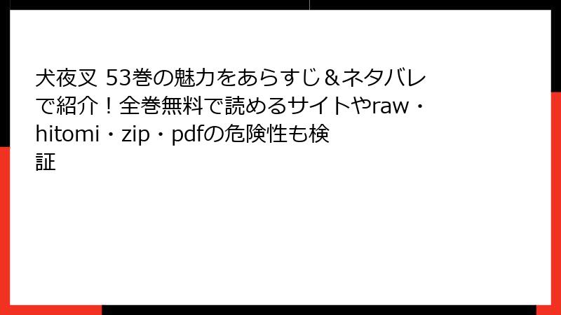 犬夜叉 53巻の魅力をあらすじ&ネタバレで紹介!全巻無料で読めるサイトやraw・hitomi・zip・pdfの危険性も検証
