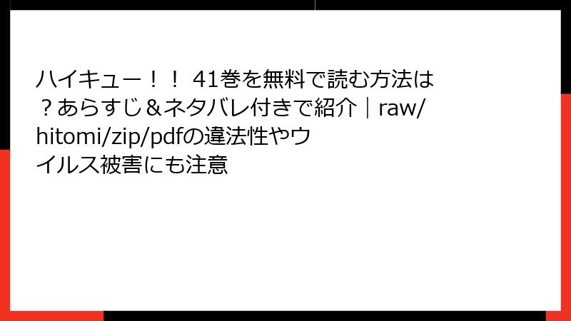 ハイキュー!! 41巻を無料で読む方法は?あらすじ&ネタバレ付きで紹介|raw/hitomi/zip/pdfの違法性やウイルス被害にも注意