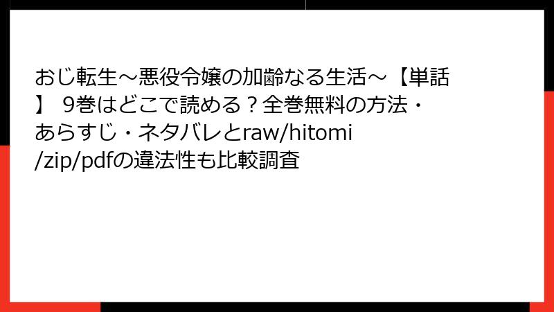 おじ転生~悪役令嬢の加齢なる生活~【単話】 9巻はどこで読める?全巻無料の方法・あらすじ・ネタバレとraw/hitomi/zip/pdfの違法性も比較調査