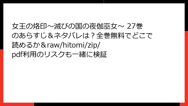 こんにちは、マンガファンの皆さん! 『女王の烙印~滅びの国の夜伽巫女~』は、緋紋島を舞台にしたエロティックホラーとして、加藤キャシー先生の魅力的なストーリーと作画で多くの読者を魅了しています。しかし、raw、hitomi、zip、pdf、漫画バンクといった海賊版サイトでこの作品を読むことを検討している方もいるかもしれません。無料で読める誘惑は強いですが、海賊版サイトの利用には重大なリスクが伴います。この記事では、