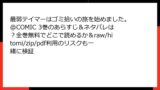 たとえば、zipファイルで『うしろの正面カムイさん』72話をダウンロードしようとした場合、ファイルに仕込まれたマルウェアがデバイスを乗っ取り、個人情報がダークウェブで売買される可能性も。こうした被害は、修復に時間と費用がかかり、精神的ストレスも大きいです。