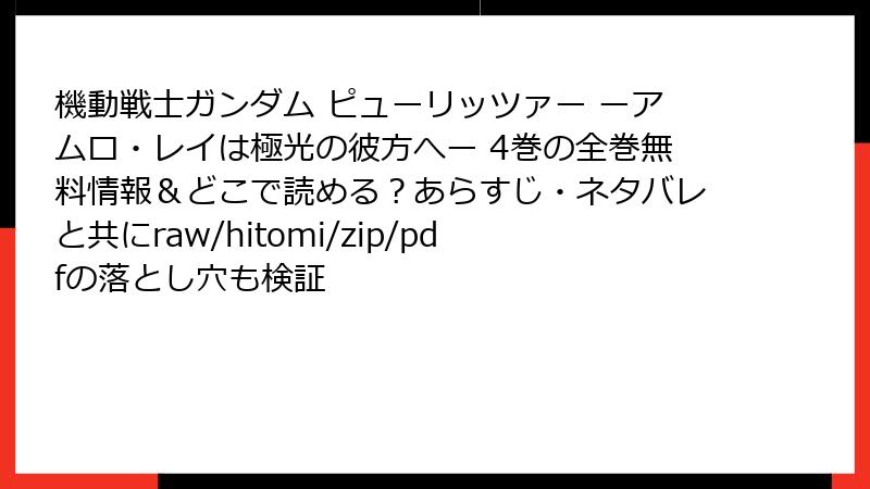 『機動戦士ガンダム ピューリッツァー ―アムロ・レイは極光の彼方へ―』4巻は、アムロ・レイの失踪を追うキッカ・コバヤシの物語がさらに深化し、ガンダムファンの心を掴む一冊です。宇宙世紀0095年の世界で、キッカの取材を通してアムロの人間性やニュータイプの宿命が描かれる本作は、ファンから高い評価を受けています。この記事では、読者のレビューや口コミ、評判を基に、4巻の魅力と議論のポイントを詳しく掘り下げます。SNSやレビューサイトから収集した生の声をもとに、ガンダム好き必見の情報をお届けします!